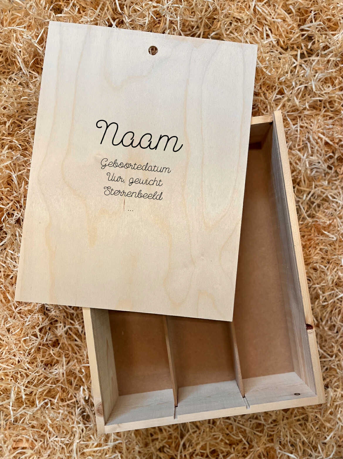 Stijlvolle kist om doopsuiker en dierbare herinneringen in te bewaren.